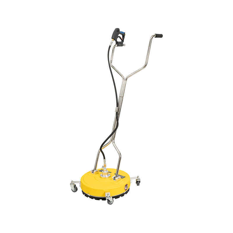 Plastgolvgolvrengöraren är ett tillbehör för en högtrycksrengörare, som speciellt används för att rengöra golvet och används i samband med högtrycksrengöraren. Högtrycksvattnet som tillhandahålls av högtrycksrengöraren används som kraft och vattenkälla och sprayas på golvet genom golvrengöraren för att slutföra rengöringen av golvet. Golvrensaren är utrustad med en roterande mittaxel, som är ansluten till en roterande arm. Ett munstycke installeras i slutet av den roterande armen, och munstycket har en sned vinkel på cirka 70 grader med marken. På detta sätt, när högtrycksvattenflödet spolas till marken, bildar marken en omvänd tryck till högtrycksvattenflödet, vilket pressar den roterande armen att rotera med hög hastighet. Därför, när en person skjuter på golvrengöraren för att rengöra marken, spolar högtrycksvattenflödet ut ur munstycket marken medan den roterar med hög hastighet, vilket kraftigt förbättrar rengöringseffektiviteten och gör den rengjorda marken mycket ren. För närvarande har denna produkt använts i stor utsträckning i vägytor, samhällsgolv, offentliga platser och andra tillfällen för golvrengöring och är en mycket populär produkt. Plastskivan har stark korrosionsmotstånd, lätt konsistens och är relativt mer ekonomisk och praktisk.